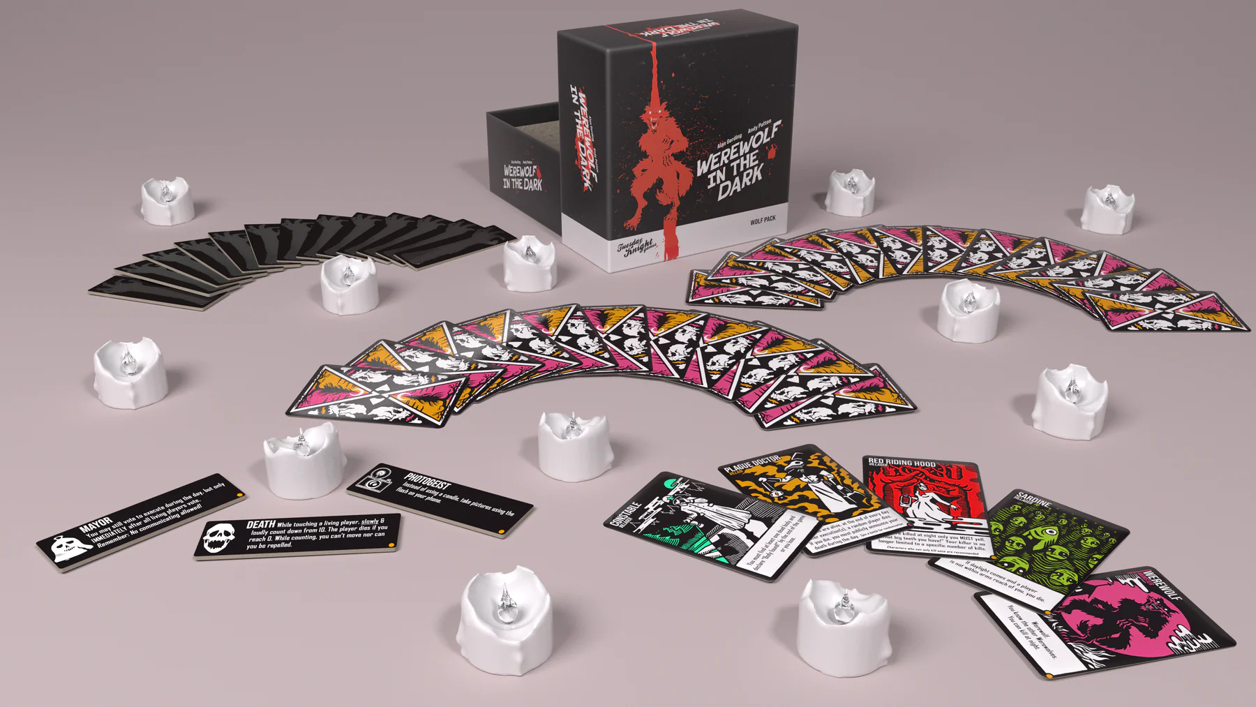 This box contains all of the titular Werewolf monsters and a curated selection of villagers, villains, and ghosts... all balanced and designed to provide everyone with maximum fun without much complexity.